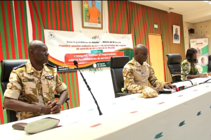 Le Ministère de la Sécurité a tenu, ce mardi 19 novembre dans la salle de conférence Dr Luc Marius IBRIGA de l’ASCE-LC, la première session du cadre de concertation de ses organes de contrôle, autour du thème central : « Intégrité, honneur et responsabilité : valeurs fondamentales d’un service de sécurité. »